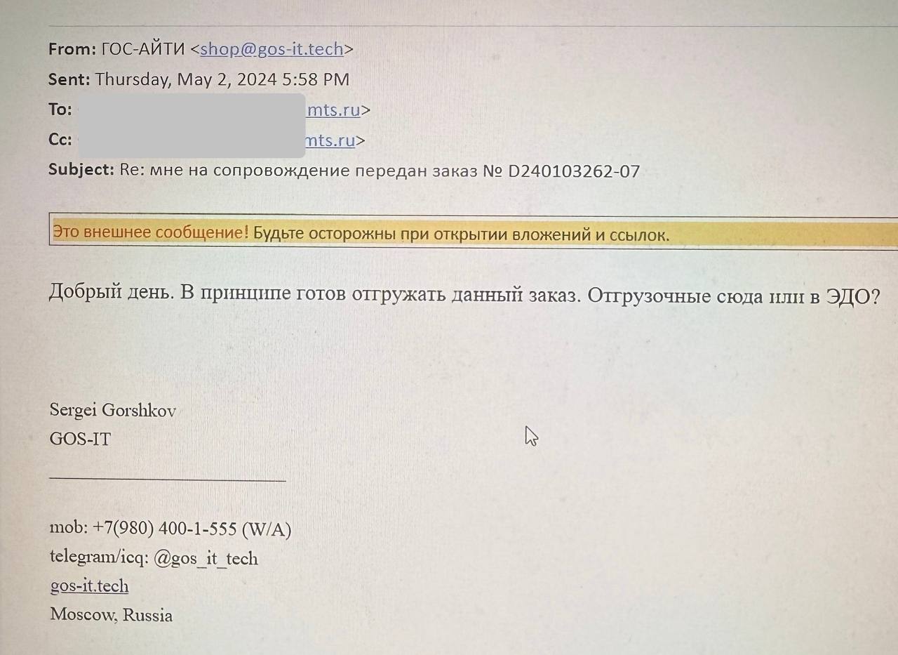 В 21.00 по Московскому времени клиент обратился со срочной потребностью подобрать конфигурацию сервера под его задачи и попросил быстро отгрузить сервер курьером в г. Дубна Московская область.