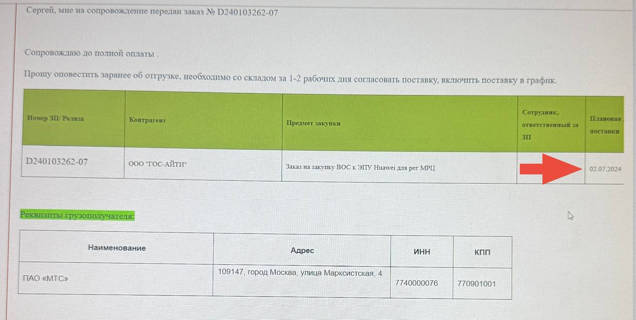 Клиент обратился с запросом на поставку выпрямителей Huawei R4850G2 и контроллеров ЭПУ Huawei SMU02C срок поставки, прописанный в договоре 60 рабочий дней.